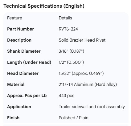 SOLID RIVET 3/16" X 1/2" BRAZIER HEAD (443)