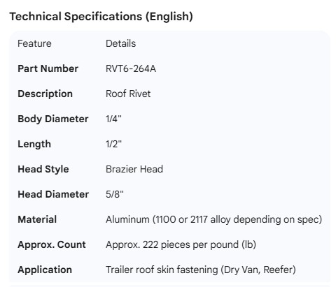 ROOF RIVET 1/4" X 1/2" (222)
