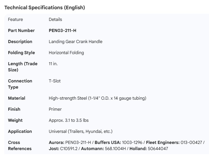 LANDING GEAR CRANK HANDLE 11" HORIZONTAL