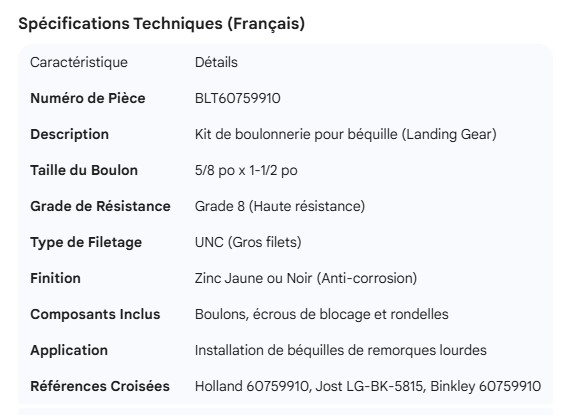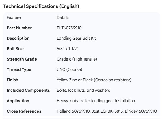 LANDING GEAR BOLT KIT 5/8" X 1-1/2"