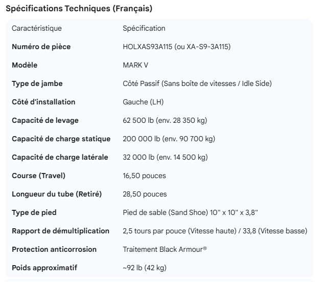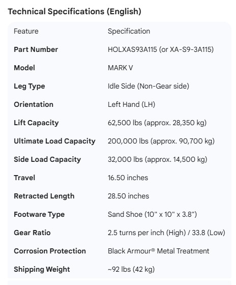 HOLLAND IDLE SIDE LANDING GEAR LEG MARK V 28.50"