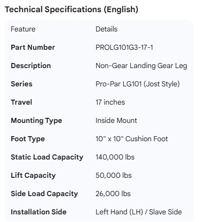 PROPAR NON-GEAR LEG 17" JOST STYLE INSIDE MNT CUSHFT