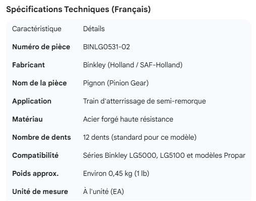 BINKLEY PINION GEAR
