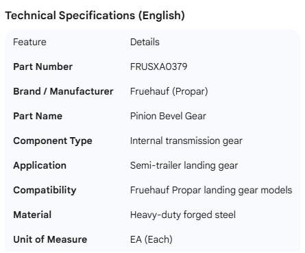 FRUEHAUF PINION LEVEL GEAR