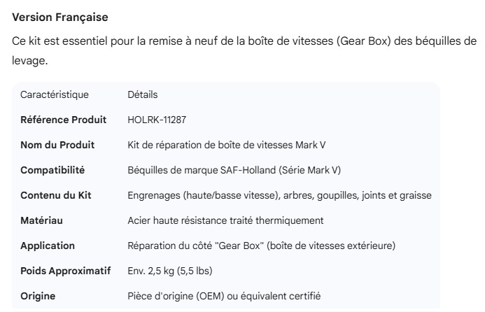 HOLLAND GEAR BOX REPAIR KIT MARK V