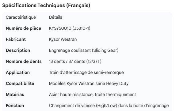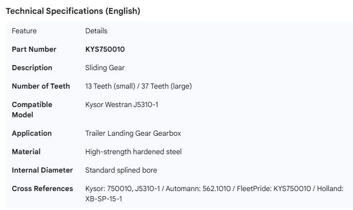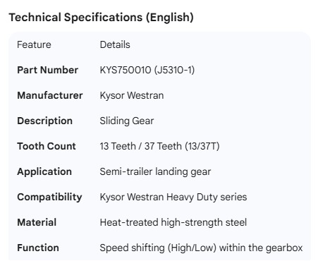 KYSOR WESTRAN SLIDING GEAR 13/37T (J5310-1)