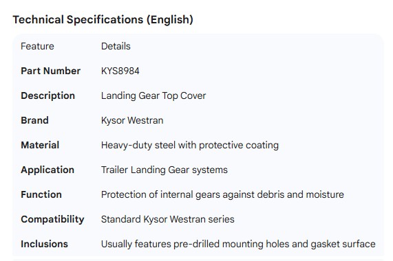 KYSOR WESTRAN TOP COVER
