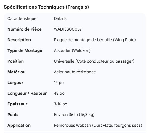 WABASH LANDING GEAR WING PLATE UNIVERSAL