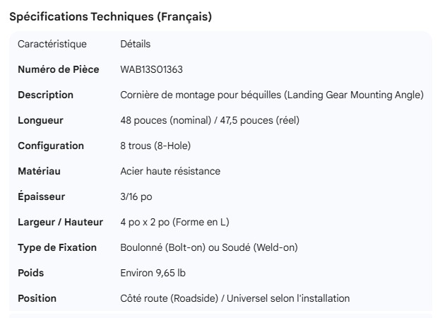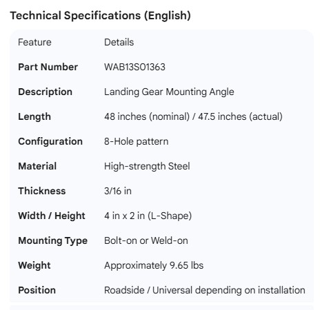 WABASH LANDING GEAR MOUNTING ANGLE WITH HOLES 48"