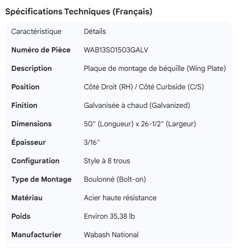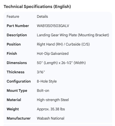 WABASH LANDING GEAR WING PLATE GALV RH