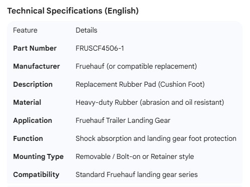 FRUEHAUF REPLACEMENT RUBBER PAD (CUSH/FOOT)