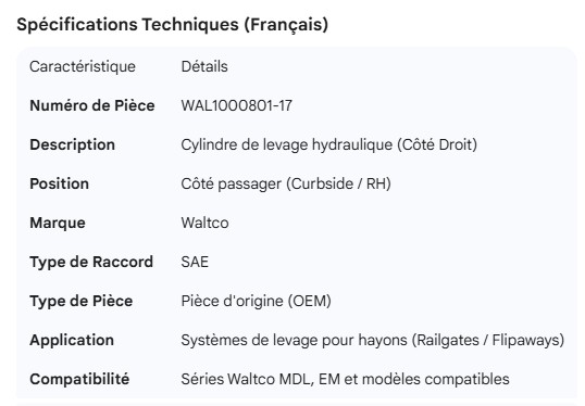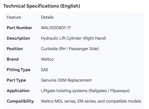 WALTCO CYLINDER LIFT RH