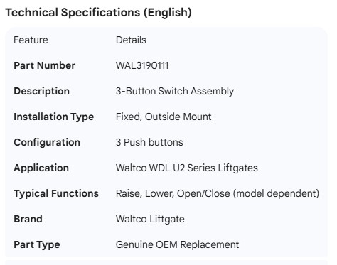 WALTCO SWITCH ASSEMBLY 3 BUTTON WDL U2