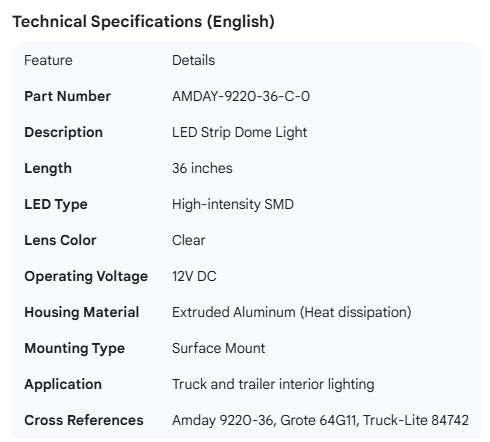 DOME LIGHT LED STRIP 36" CLEAR