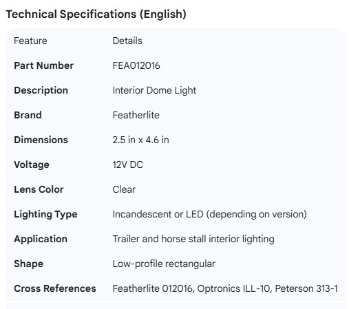 FEATHERLITE LIGHT DOME 12V 2.5" X 4.6" CLEAR