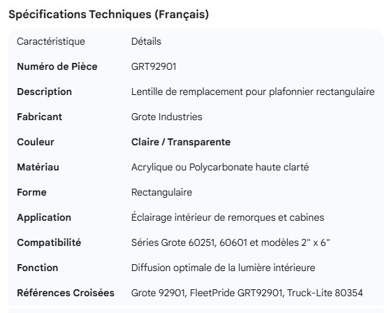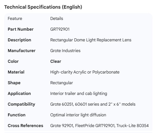 GROTE RECTANGULARE DOME LIGHT REPLACEMENT LENS