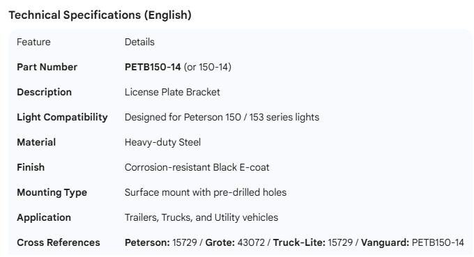 PERTERSON LICENCE LIGHT BRACKET 15729