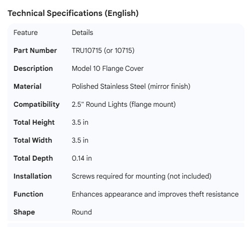 TRUCK LITE MODEL 10 POLISHED SS FLANGE COVER