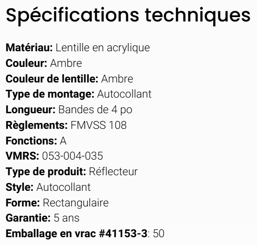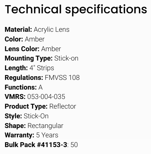 GROTE REFLECTOR AMBER RECTANGULAR 4" STICK ON