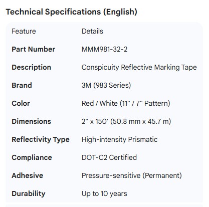 3M REFLECTIVE TAPE RED / WHITE (11/7) 2" X 150'