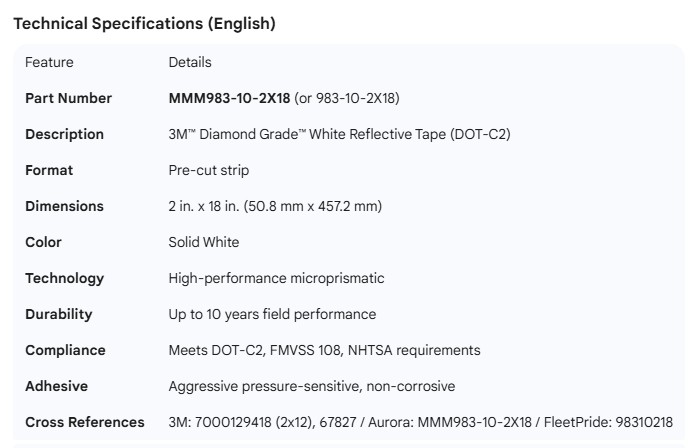 3M REFLECTIVE TAPE WHITE STRIP 2" X 18"