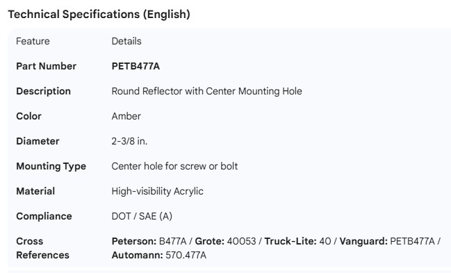 PETERSON ROUND REFLECTOR CENTER MOUNT 2-3/8" AMBER