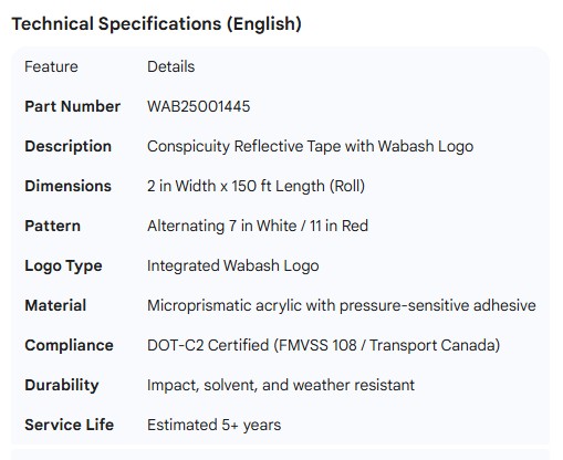 WABASH LOGO REFLECTIVE TAPE 7"WHT/11"RED (150 RL)