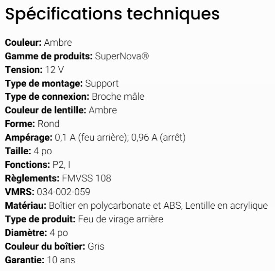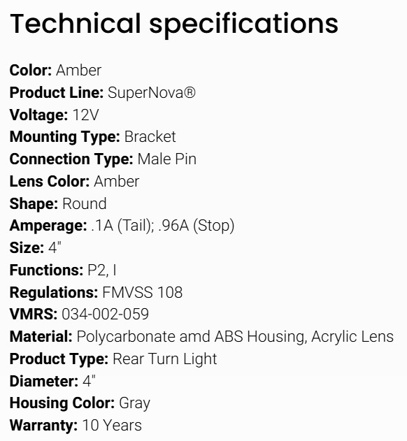 GROTE LED LIGHT 4" STOP/TURN LIGHT GROMMET MOUNT AMBER