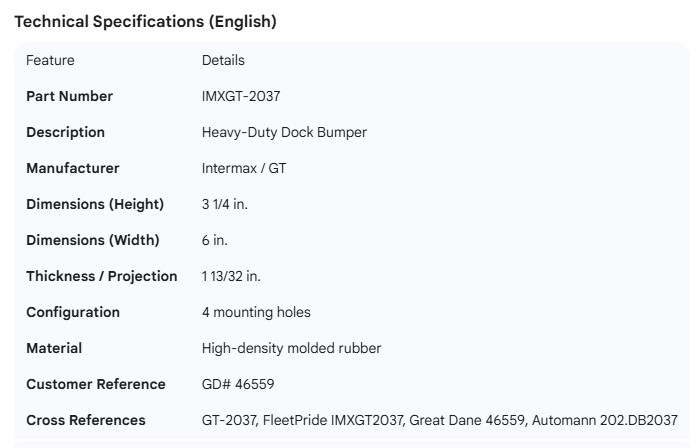 DOCK BUMPER 4 HOLE 3-1/4" X6 "X 1-13/32" 46559