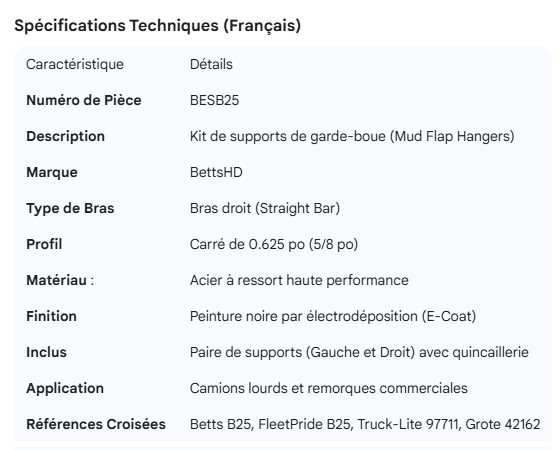 BETTS MUD FLAP HANGER KIT