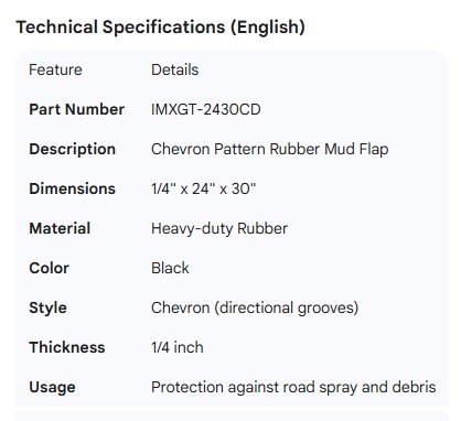 MUD FLAP BLACK RUBBER 1/4 X 24 X 30 CHEVRON