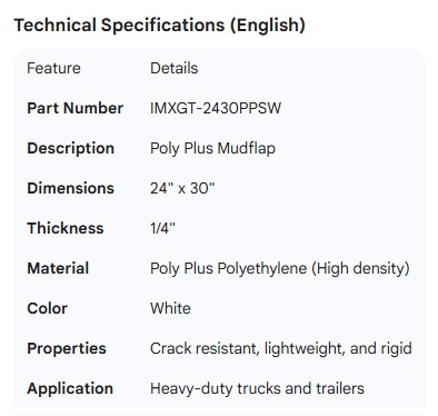 MUDFLAP 24" X 30" X 1/4" WHITE POLY PLUS