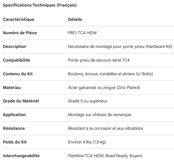 TIRE CARRIER TC4 MOUNTING HARDWARE KIT