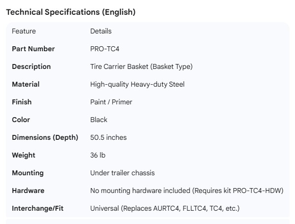 TIRE CARRIER BASKET TYPE NO MOUNTING HARDWARE