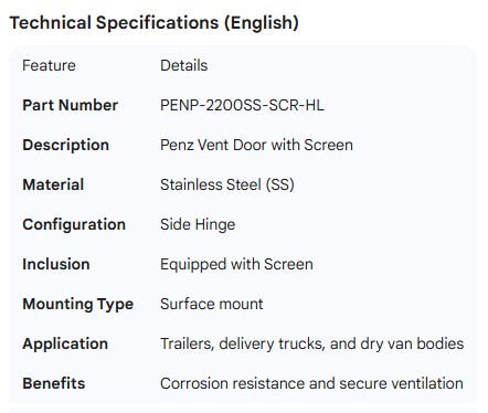 PENZ VENT DOOR SS WITH SCREEN SIDE HINGE