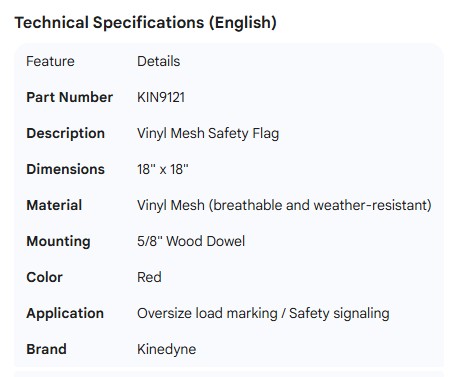 KINEDYNE FLAG RED VINYL MESH WITH 5/8" WOOD DOWEL 18" X 18"
