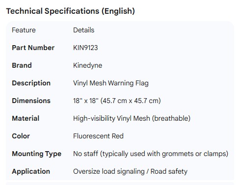 KINEDYNE FLAG RED VINYL MESH 18" X 18"