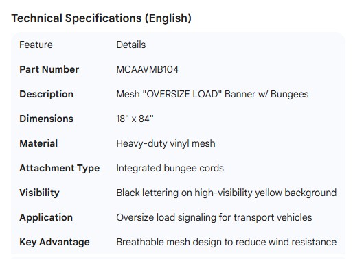 MESH BANNER OVERSIZE LOAD W/BUNGEES 18" X 84"
