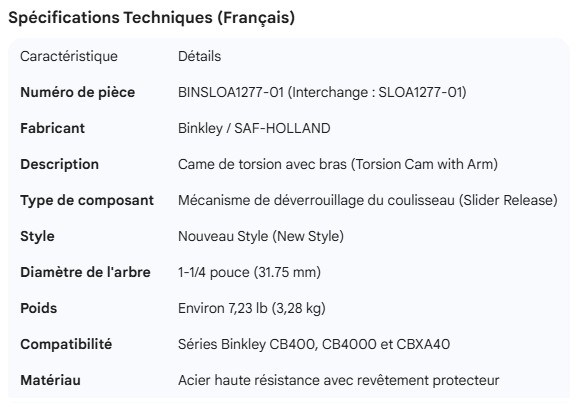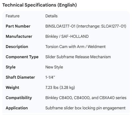 BINKLEY SLIDER BOX TORSION CAM WITH ARM NEW STYLE