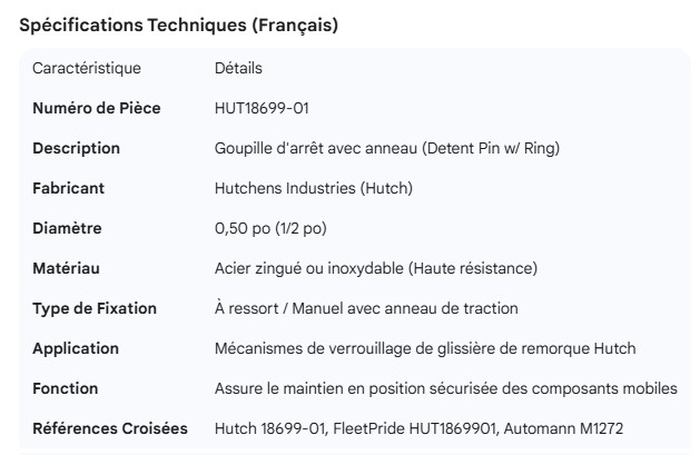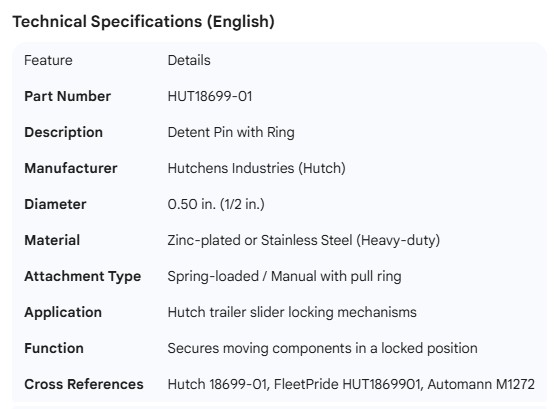 HUTCH DETENT PIN W/RING, 0.50 DIA