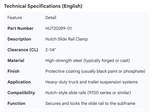 HUTCH SLIDE RAIL CLAMP 2-1/4" CL