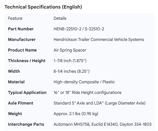 HENDRICKSON AIR BAG SPACER 1-7/8"