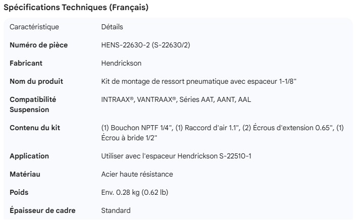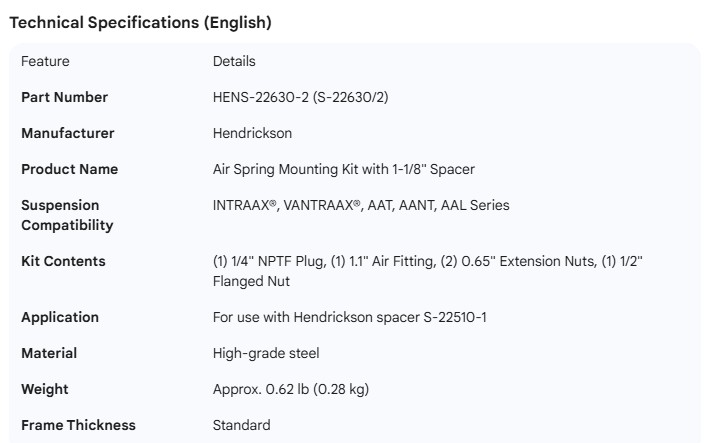 AIR SPRING MOUNTING KIT 1-1/8" SPACER