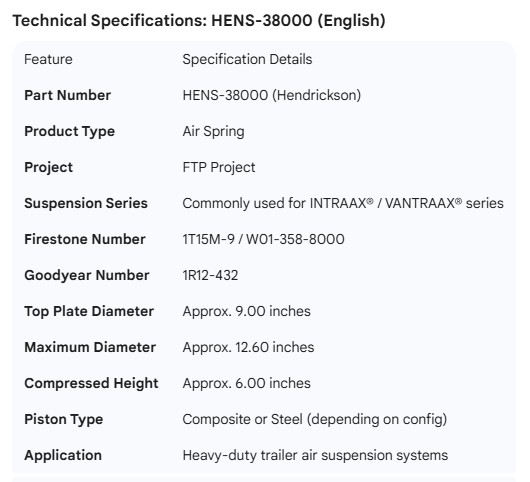 HENDRICKSON AIR SPRING FTP PROJECT