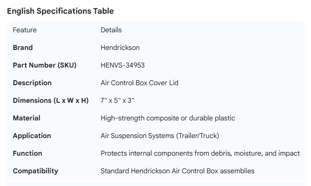 HENDRICKSON AIR CONTROLS BOX COVER LID 7" X 5" X 3"