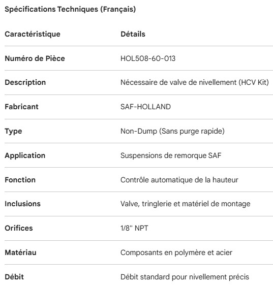 SAF LEVELING VALVE HCV KIT NON DUMP