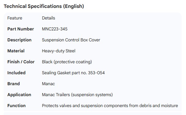 MANAC SUSPENSION CONTROL BOX COVER STEEL BLACK INCL 353-054