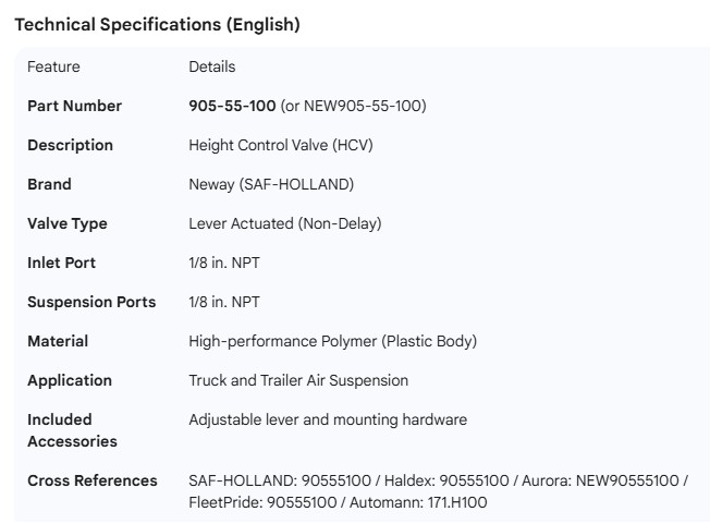 NEWAY HEIGHT CONTROL VALVE