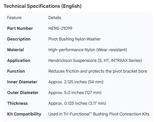 HENDRICKSON PIVOT BUSHING NYLON WASHER