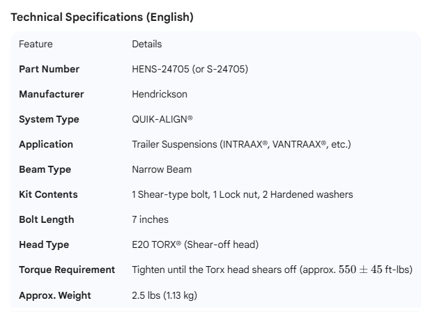 HENDRICKSON PIVOT BOLT KIT